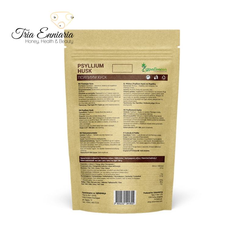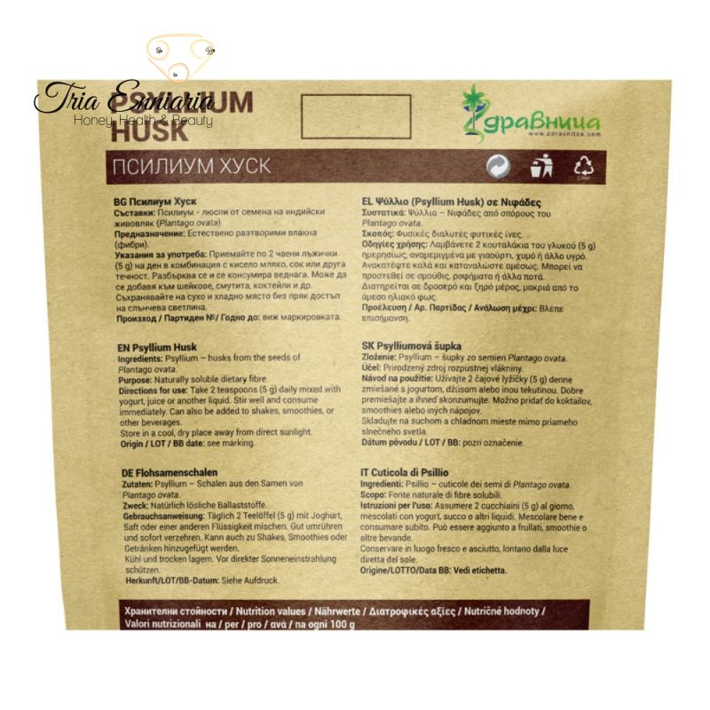 - За здрава храносмилателна система: Консумацията на фибри от Псилиум Хуск подобрява работата на стомашно-чревния тракт, храносмилането и метаболизма, поддържа чревната мускулатура. Изключително полезно за хора страдащи от синдрома на Крон (лениви черва).